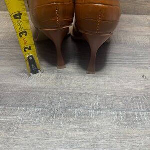 The Oasis Society Vanessa Knee High Tan Snake Skin Boots in Women's Size 8.5 are a stylish and chic addition to any wardrobe. These heeled high boots feature a thigh-high shaft with a snake embossed print, a pointed toe shape, and a mid-height kitten heel. Made from faux leather with a synthetic lining, these boots are perfect for adding a touch of sophistication to any outfit. The Oasis Society brand ensures quality and durability, making these boots a must-have for any fashion-forward woman.