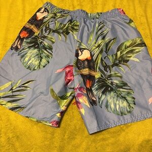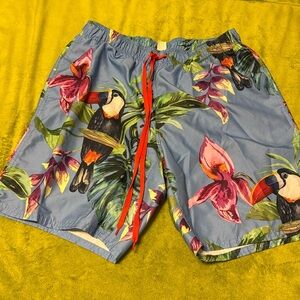Oasis Swim Trunks Men’s Large Blue Tropical Mesh Lining Board Pockets Shorts