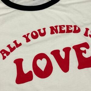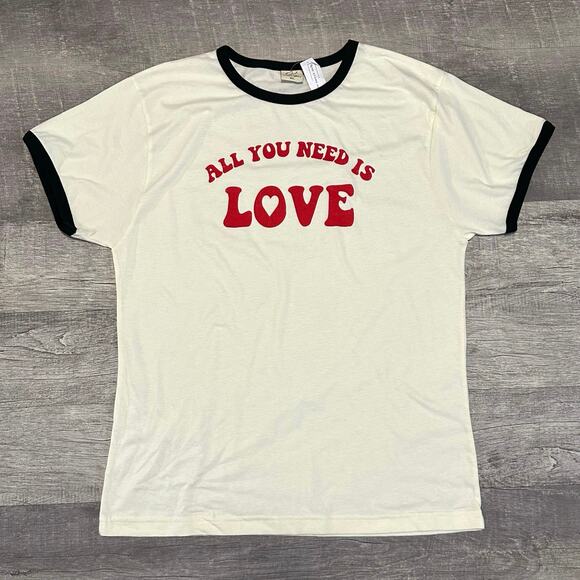 Oat Collective NEW All You Need Is Love Ringer Tee Womens XL Ivory Short Sleeve