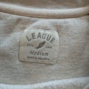 League brand sweatshirt, color is cream /oat with navy embroidered lettering. Size is medium, more of an oversize fit. Very comfortable and soft. Longer length with split hem at hips and the back is a bit longer than the front. Very good overall condition, this one just sits in my closet taking up space.