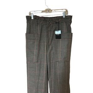 Oat NY Glen Plaid cuffed neutral business casual academia trouser pant NWT