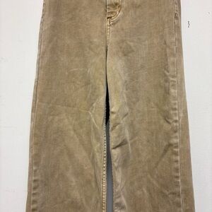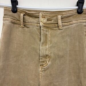 Awesome Oat New York Greer Wide Leg Jeans. Super high rise. Front welt pockets. Back patch pockets. Sturdy denim with stretch. Raw hem.