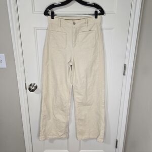 Oat New York High Rise Wide Leg Corduroy textured pants in cream color, size 8/28.