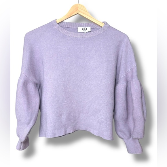 Oat New York Lavender Puff Sleeve Cropped Sweater Size XS