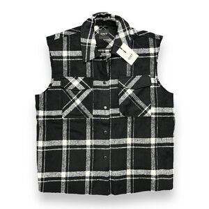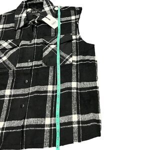 Oat New York Vest WMNS M Black Wool Blend Plaid Hunter Frayed Layer Snap Button