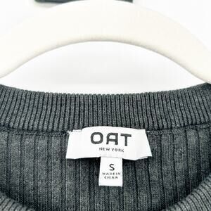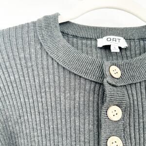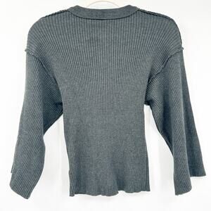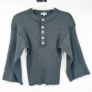 Oat Womens Fall Drop Shoulder Wide Sleeve Ribbed Knit Henley Sweater in Gray. Size Small.