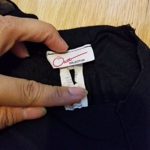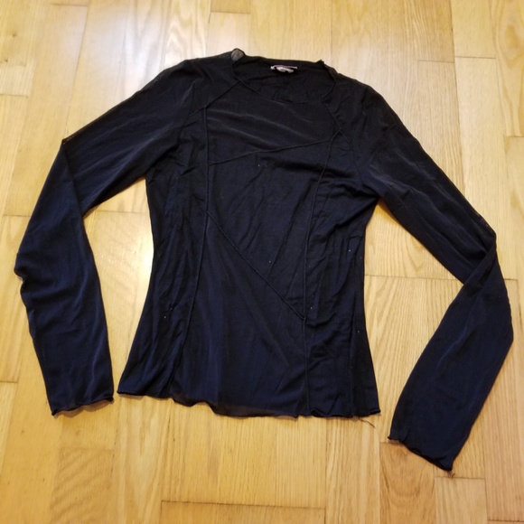 Like new condition, black shirt with lined body. There is contrast zig zag stitc hing in front. I have a similar top in a sleeveless version. Size medium, fits up to 34" bust