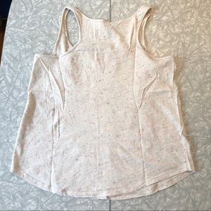 Great neutral tank from top H&M with just a pop of color when you look closely! Color is an off-white/creamy oatmeal heather. Slightly curved hem.