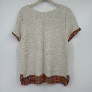 Oatmeal summer sweater with Crochet trim on hem and short sleeve all tags remove