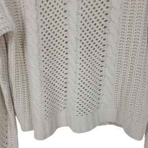 Oats Cashmere by Derbra Heyburn Ivory Chunky Cable Knit Button Close V-neck Cardigan Size XS