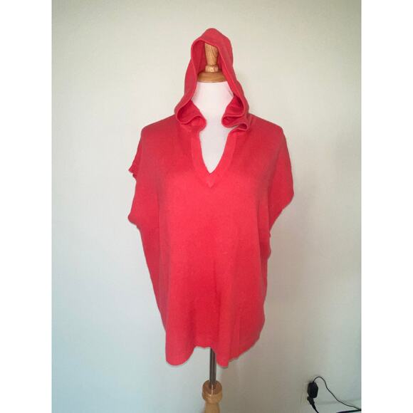 Oats Cashmere by Debra Hayburn Sweater Cap Sleeve Hooded V Neck Pink Medium