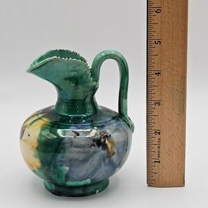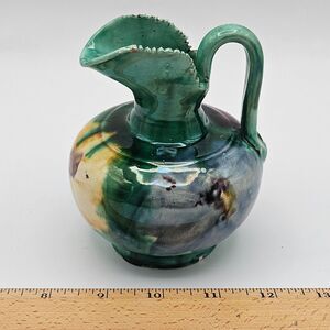 Oaxaca Mexico Dripware Ceramic Art Pottery Pitcher Flowers Green Vintage