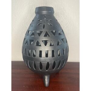 Oaxacan Barro Negro Black Pottery Pierced Planter Tripod Base Handmade Mexico