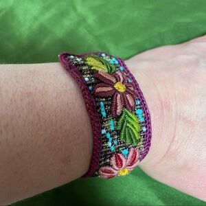 Oaxacan Bracelet hand woven, beaded, crocheted and embroidered