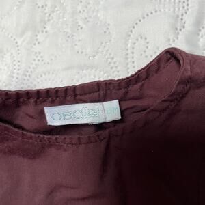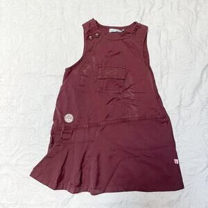 Obaibi pleated jumper style dress. Maroon with front pocket detail. French brand. Good condition, somewhat shiny material. Size 6 months.