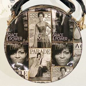 TAG: handbag, purse, tote, usa, american, presidential, michelle obama, magazine, print, Glossy magazine cover collage dome satchel bag purses bowling bag Michelle Obama bags