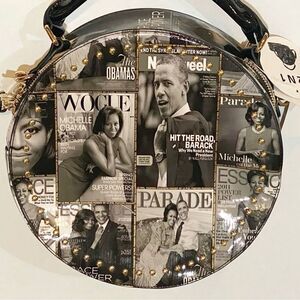 Obama Magazine Handbag Round Black/White glossy collage Purse, tote NWT