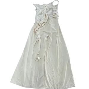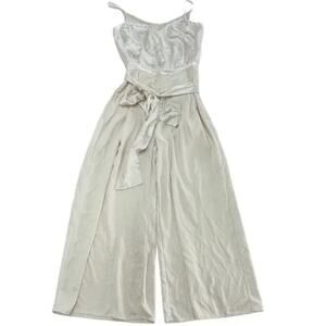 Obando Jumpsuit Womens 12 Cream Satin Wide Leg Tie Waist Formal Party Flowy