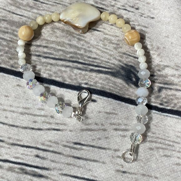 Bracelet hecho a mano, design with Mother of Pearls, an Crystal Checo.