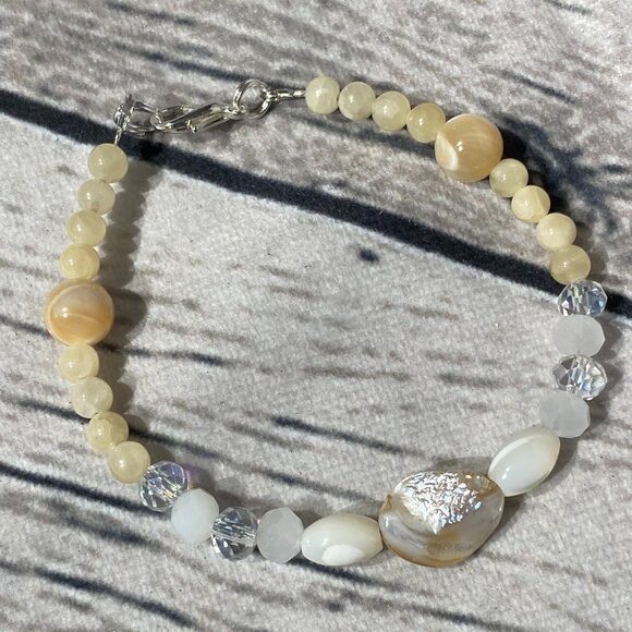 Bracelet hecho a mano, design with Mother of Pearls, an Crystal Checo.
