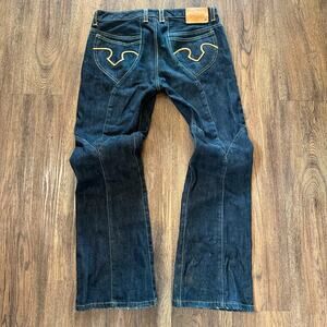 These jeans are tagged w34 and have a unique pattern and nice leather details all over. Hard to find these in size 34