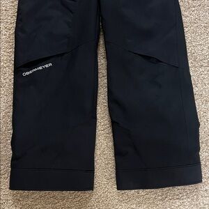 Obermeyer children’s size 6 snow pants in black. Made with I-Grow extended wear feature that innovates a way to increase the life of your child’s garment by including adjustable straps on the shoulders, the waist and bottom of the pants.