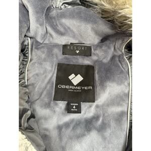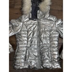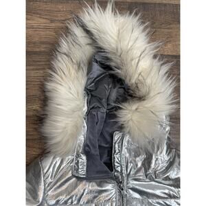 Obermeyer Bombshell Ski Jacket Metallic Silver Coat Hooded Fur Trim Women’s 4