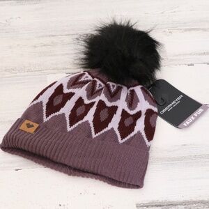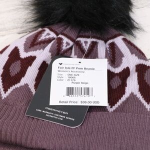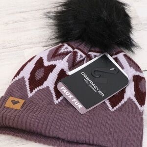 Obermeyer Fair Isle Faux Fur Jacquard knit Pom Beanie Purple Reign NEW