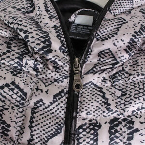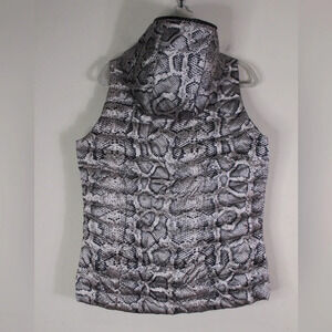 Obermeyer Gray Snake Print Hooded Puffer Vest Size Large Down Insulation Hood