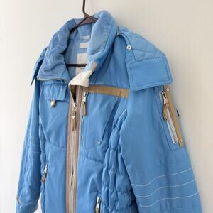 Obermeyer Hadley Ski Jacket Womens 10P Puffer Hooded Apres Y2K Snow Retro Blue