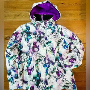 Obermeyer brand insulated snowboard/ski jacket., or everyday winter jacket. Women’s size 16 in the Victoria (watercolor) style.