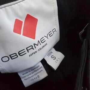 black, kids/teen size 8 Obermeyer Jolie Snowpants. Extended Wear System so they can be worn longer.