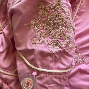 Excellent used condition, so many great details, beautiful embroidery all over the jacket, printed fabric lined detachable hood with faux fur trim, mitten clips can be tucked in or left out, stretchy cuffs with sticky closure to keep out snow, a compass and pretty zipper pull. This jacket is gorgeous, will keep your little one warm and stylist, they grow so fast why pay full price!