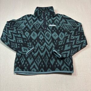Obermeyer Kids Sz Large Aztec Print Long Sleeve Button Fleece Jacket Green Black See pictures for reference and measurements