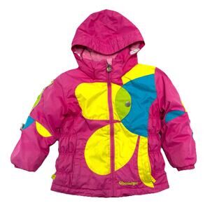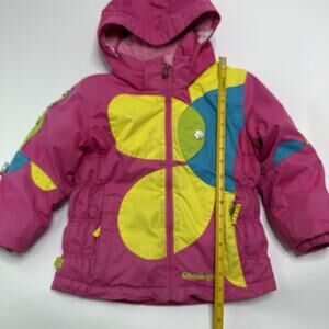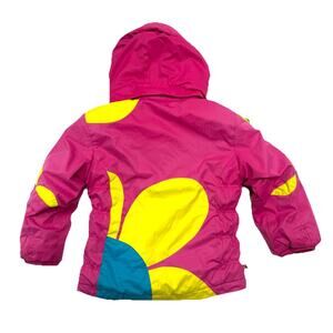 Obermeyer Kismet Jacket Coat Kids Sz 5 Pink Winter Hood Yellow Flower Bright