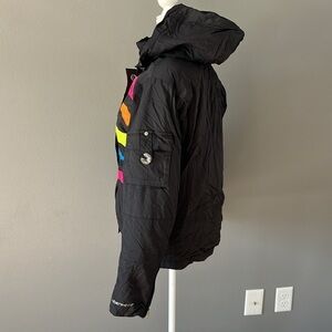 Obermeyer Niki Striped Ski Jacket Black Zip and Snap Closure