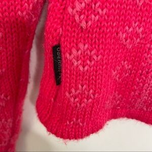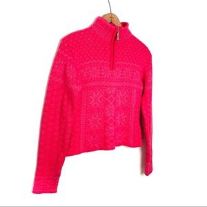 Bright pink. Snowflake Nordic pattern. Quarter Zipper. No holes. Last 2 photos show stains. Minimal pilling. Size S. 18” armpit to armpit. 20” length
