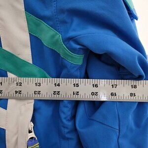 This Obermeyer Ski/Snowboard Winter Jacket Size 10 in blue and green is a must-have for winter sports enthusiasts! ❄️🏂 Made from durable polyester, this jacket is designed to keep you warm and dry on the slopes. #WinterFashion #Skiing #Snowboarding
