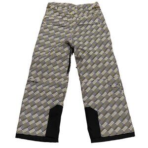 These snowboard pants feature a zip button fly, adjustable velcro waist tabs, front and back pockets, and inside leg vents. Excellent condition, very minor wear on the back hem, see pictures hard to see, mini check patterns, size 12