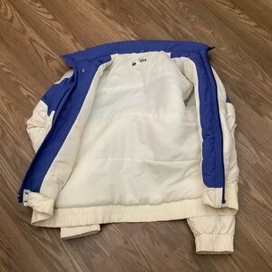 The Obermeyer Sport Jacket Coat is a vintage 80s-inspired puffer jacket for men, made in Hong Kong. This jacket features a nylon outer shell, polyester filling , and a nylon lining, making it ideal for travel and casual occasions. It includes accents like a logo and tuck-away hood, as well as convenient pockets for added functionality.
