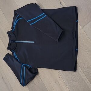 pre-loved, gently worn, good condition. Poly/spandex blend, 1/4-1/2 zip pull over, perfect for a warmer day on the slopes or hanging in the lodge