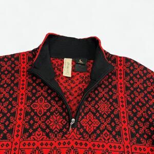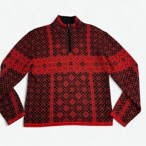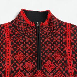 Obermeyer Sweater Womens Large Red Black Half Zip Nordic Knit Ski Style 76123