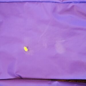 Has some flaws which I tried to capture in the photos. Small hole maybe about a dime size at the left knee area. Some very tiny stains, hardly noticeable. Overall condition of the material outside of these flaws is still very good.