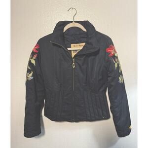 Obermeyer Winter Elegance 1947 Ski Jacket -black Floral Embroidered Sz 4