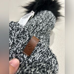 Obermeyer Women's Fir FF Beanie Black White Hat Pom Pom NWT