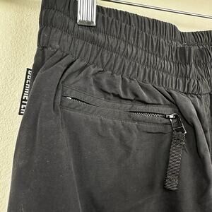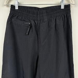 One front zip pocket below waist. Elastic Drawstring waist. Lightweight.