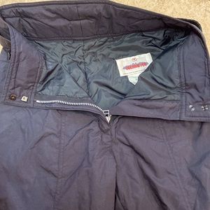 Obermeyer Women’s Stilleto Insulated Thermolite Stirrup Ski Pants Black. Shell/lining 100% nylon, Insulation 100% polyester. Two snap and zipper front closure with belt. In the boot fit with stretch mesh stirrups. Water resistant. Zipper pocket for essential storage. Excellent used condition. No rips, tears, or stains. Women’s size 8.
