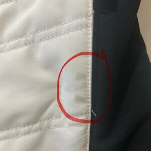 Like new — purchased brand new and worn only a handful of times on ski trips. Excellent condition with no tears or damage. There is one small area of slight discoloration next to the left-hand pocket (shown in photos).