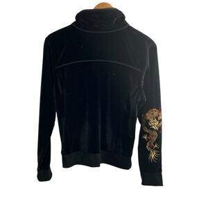 Obermeyer Y2K Black Velour/Velvet Zip Up Dragon Embroidery Track Jacket Small