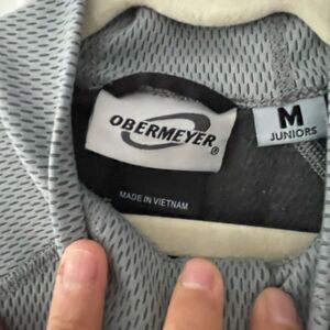 Boys gray and black obermeyer top, size medium, size 10-12, midweight layer, 1/4 zip, one stain on back, otherwise good used condition, lots of life still, priced accordingly.